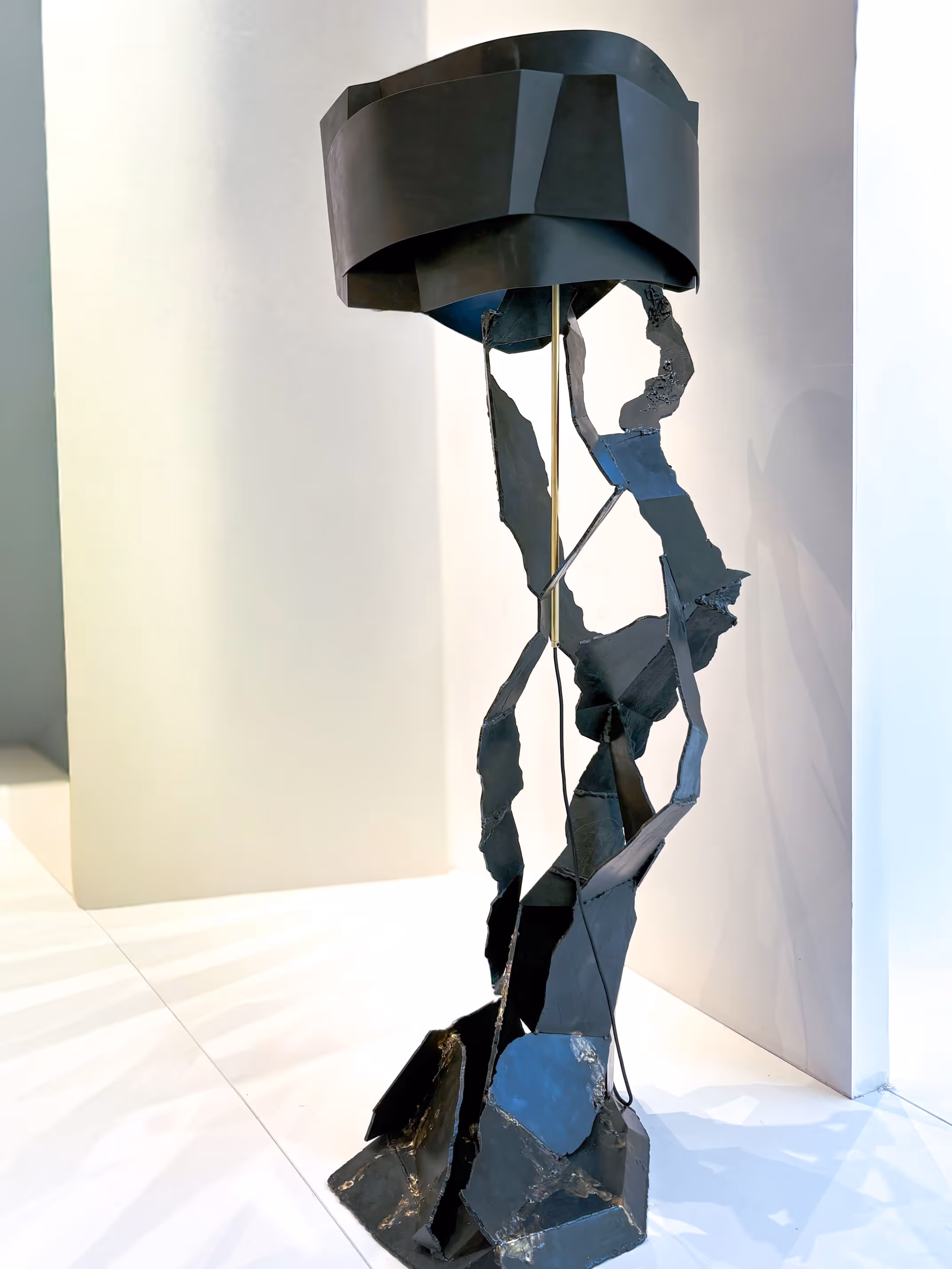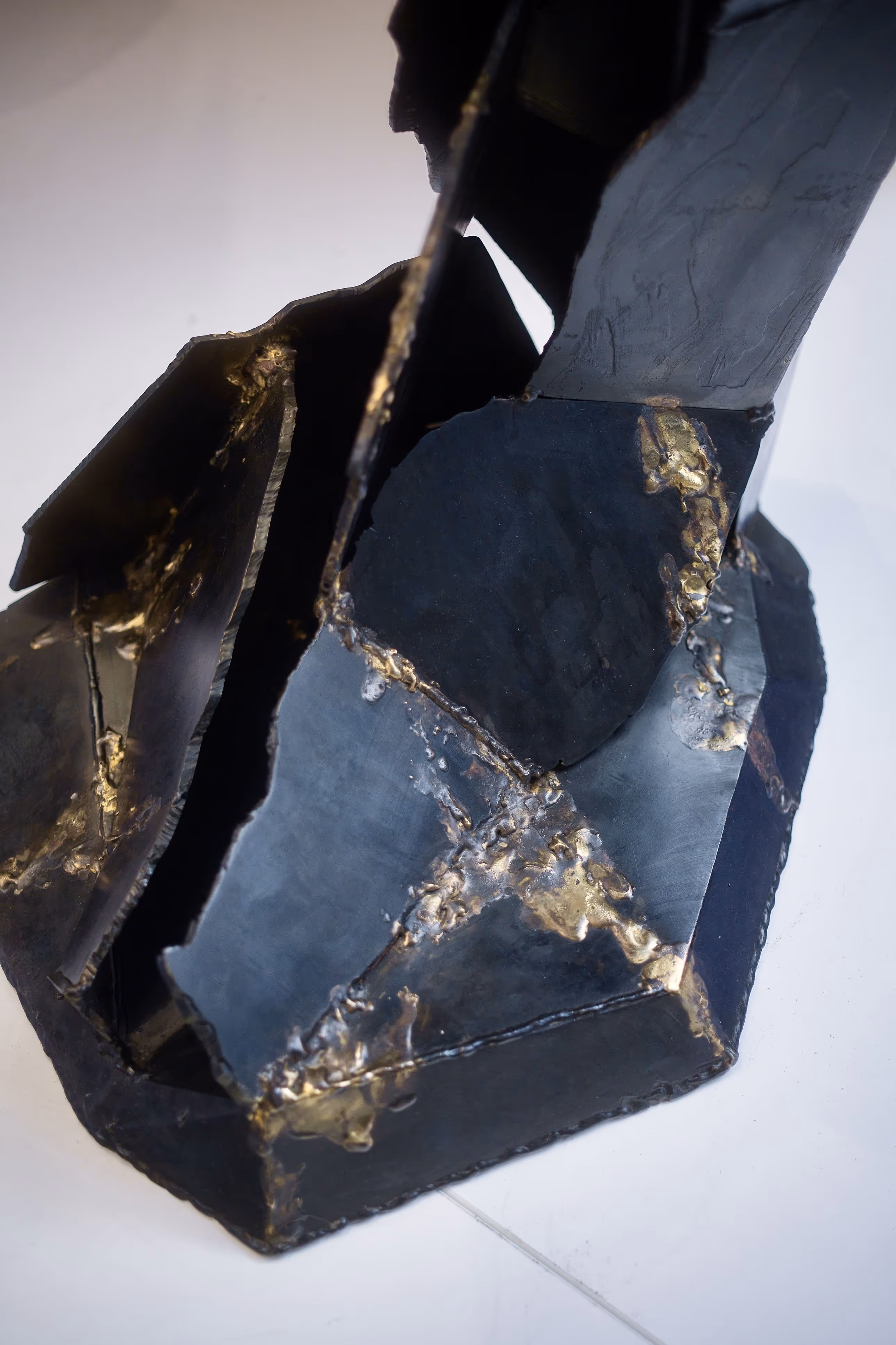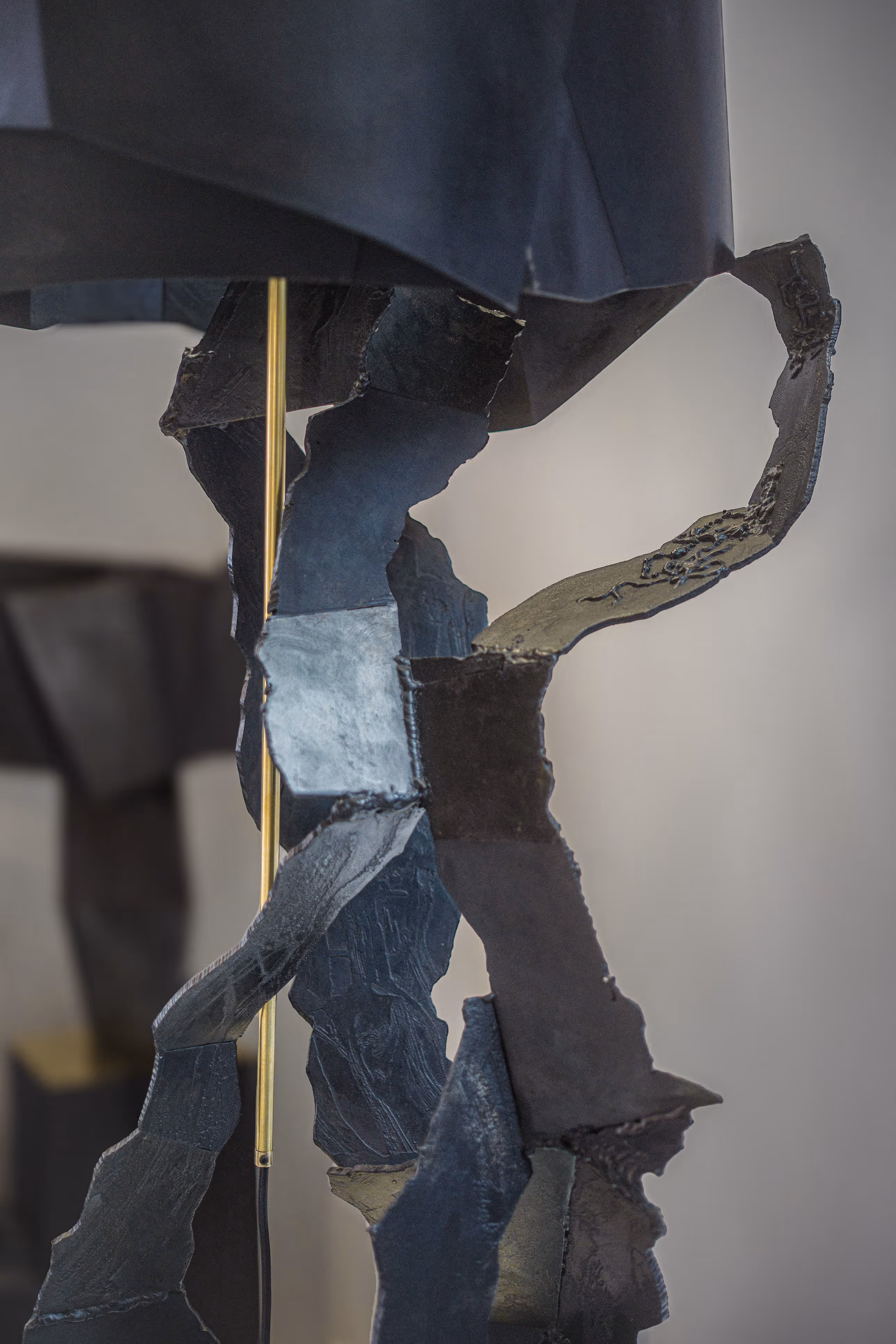 Steel, brass. 2 led Engraving steel. Hematite patina, wax. Unique piece.